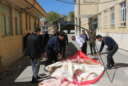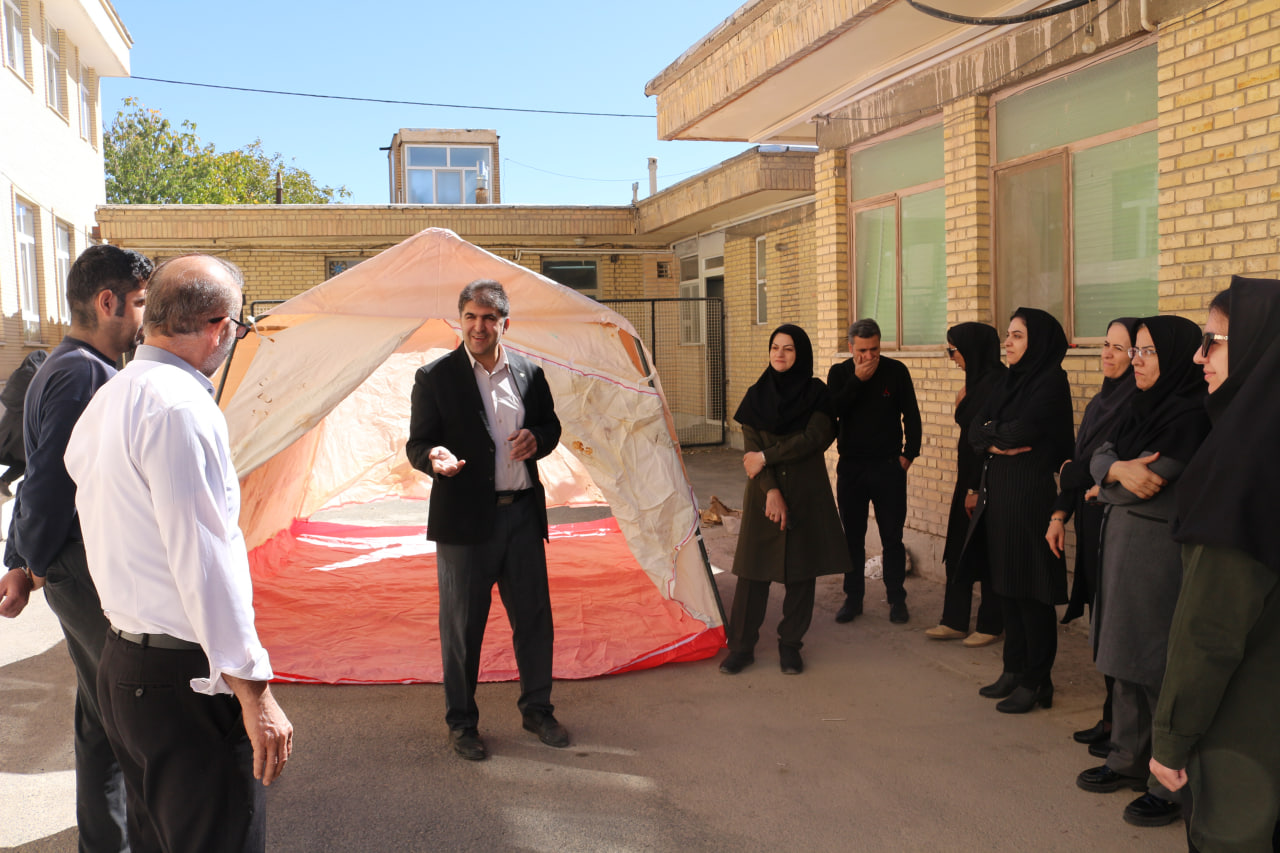 ⛺️در نخستین بخش این برنامه، تمرین عملیاتی برپایی چادر در شرایط بحران با هدف ارتقای توانمندی نیروهای بهداشتی در برپایی سریع و ایمن چادرهای امدادی و بهداشتی انجام شد. شرکتکنندگان ضمن آشنایی با اصول مکانیابی، نصب و تثبیت چادر در شرایط اضطراری، بهصورت عملی مراحل برپایی و تجهیز چادر را تمرین کردند.