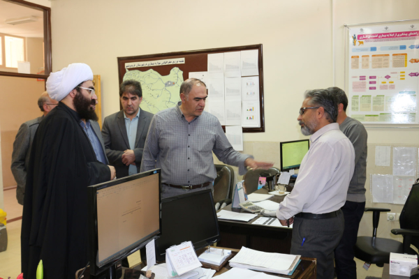 🔸این برنامه با اقامه نماز جماعت به امامت ایشان و با حضور حداکثری کارکنان آغاز شد. پس از اقامه نماز، حجتالاسلام جمیاری به همراه جناب آقای دکتر اصلانی (مدیر شبکه بهداشت و درمان)، معاون بهداشتی شبکه، مسئول حراست و مسئول امور عمومی از بخشها و واحدهای مختلف ستادی بازدید بهعمل آوردند.