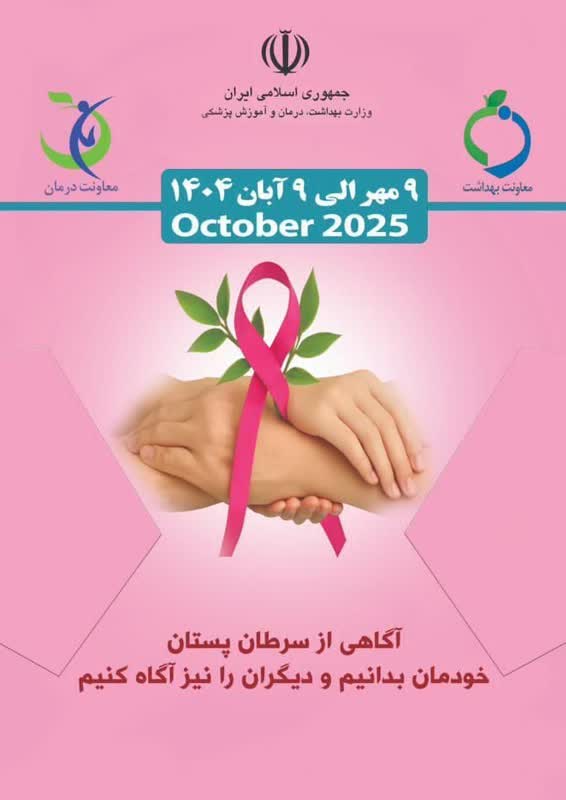 ۹ مهر لغایت ۹ آبان ۱۴۰۴؛ پویش سرطان پستان Submitted by admin on 28 October 2025 ۹ مهر لغایت ۹ آبان ۱۴۰۴؛ پویش سرطان پستان⏺️شعار پویش سرطان پستان در سال ۱۴۰۴: آگاهی امروز، زندگی فردا را نجات میدهد.