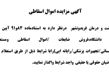 ✅ آگهی مزایده اموال شبکه بهداشت و درمان فریدونشهر
